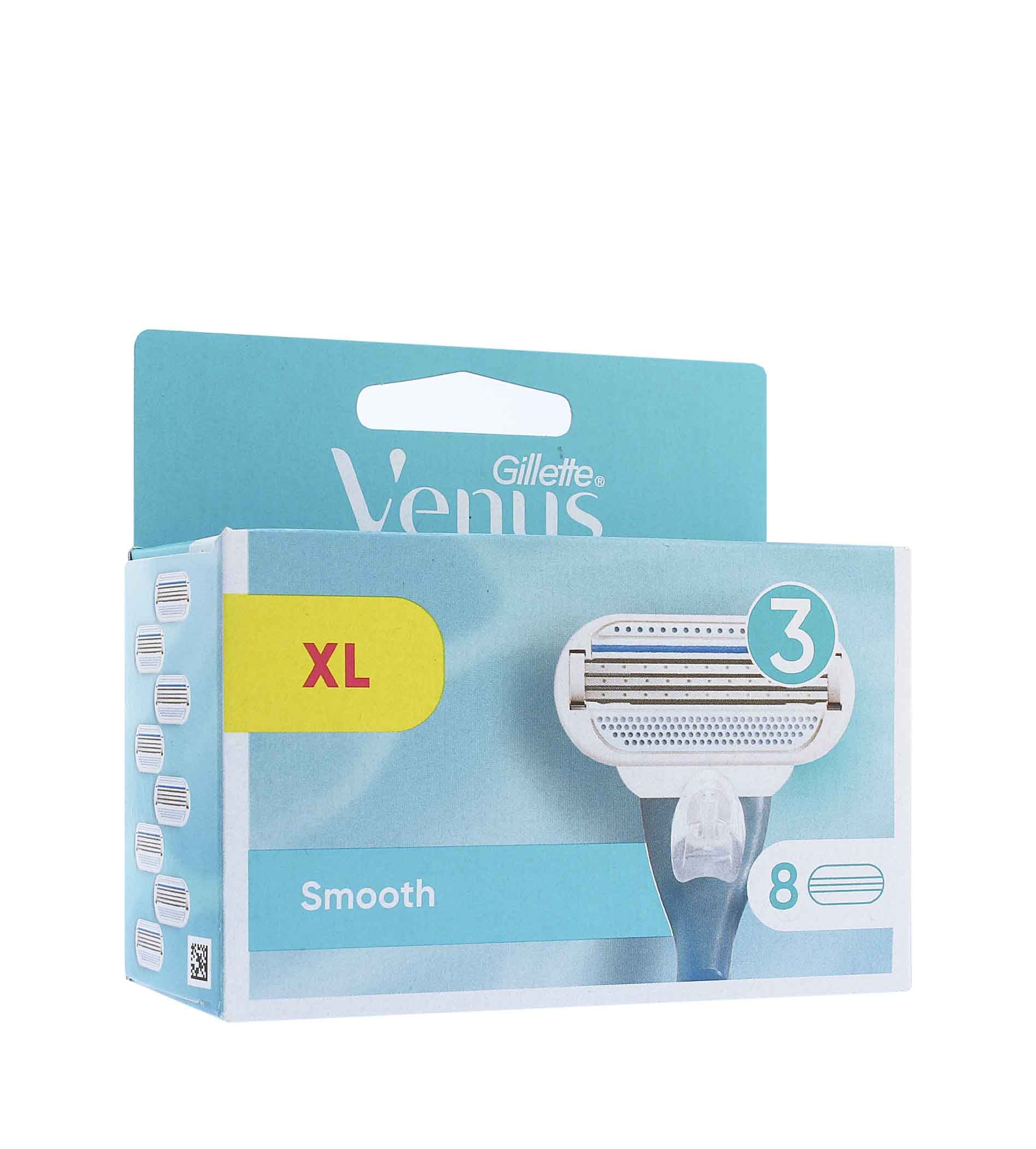 The Gillette Venus Smooth replacement head features 3 curved blades surrounded by protective elastomer comfort pads that smooth skin for a quick shave with results you can count on! The swinging head responds to subtle changes in the contours of your body. The moisturizing belt enriched with aloe vera improves the glide of the device on the skin. The heads also feature a blue indicator strip that disappears to alert you that you are no longer shaving optimally. Based on shaving twice a week, each head will last you up to 1 month.