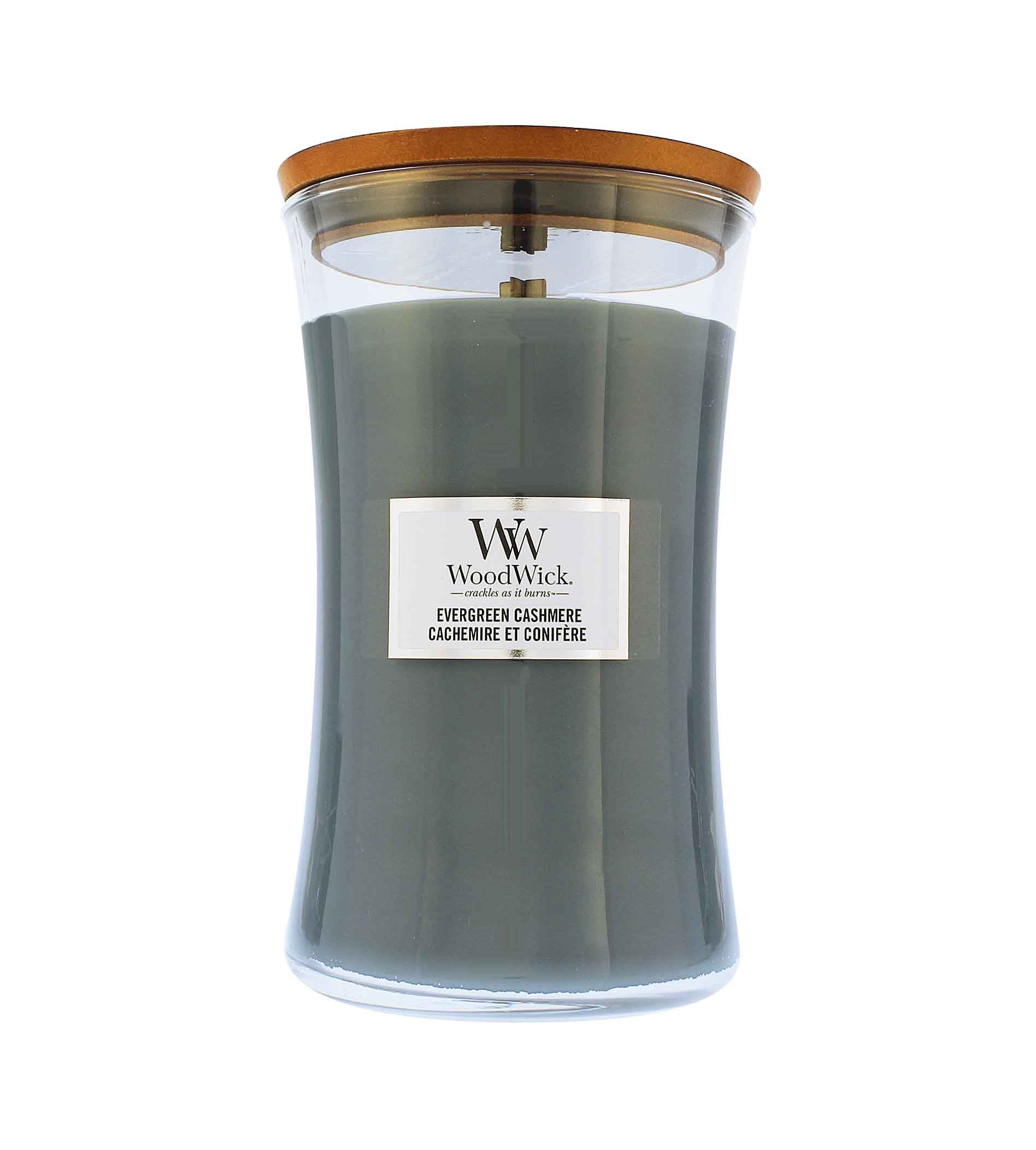 WoodWick Evergreen Cashmere vonná svíčka s dřevěným knotem 609 g