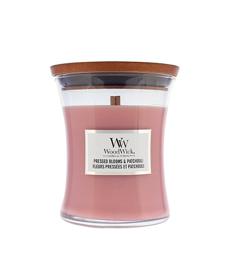 WoodWick Pressed Blooms & Patchouli scented candle with wooden wick 275 g
