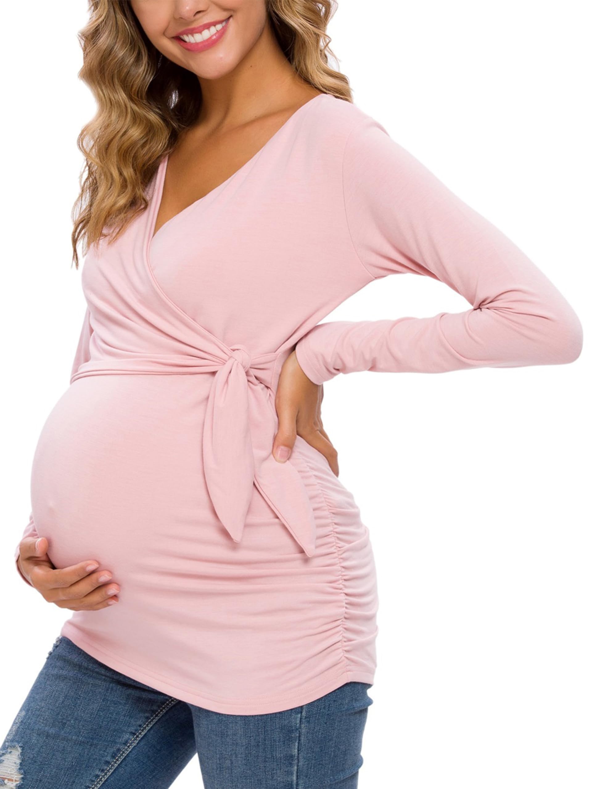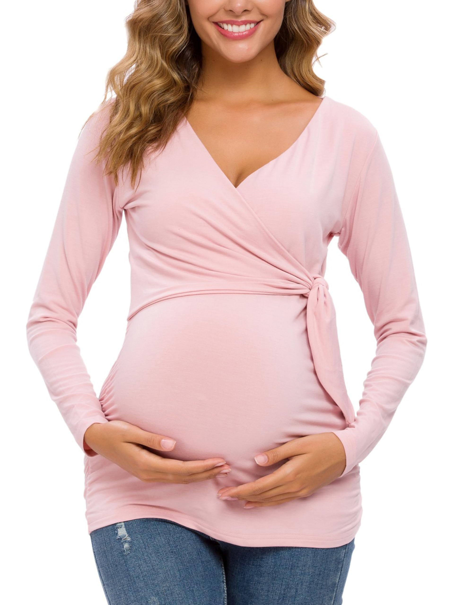 Love2Mi T-shirt d'allaitement, manches longues, col en V, rose foncé - Taille M